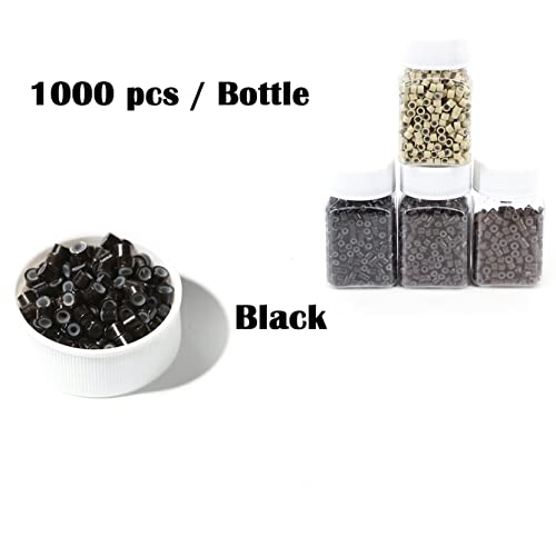 Nano anelli in silicone, Microring per Extension 1000 pezzi in Silicone 4mm Micro Anelli Allineato Collegamento Link Lined Beads per I Tip Extension Capelli Veri Cheratina Accossori, Nero