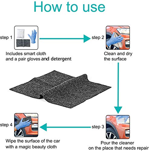 Adatto a tutti i veicoli: Che tu abbia un'auto piccola o grande, questo panno per riparazione dei graffi funzionerà. Macchie e graffi possono essere riparati rapidamente su qualsiasi auto. Utilizzare con cautela le auto di colore scuro, una forza eccessiva può causare differenze di colore.