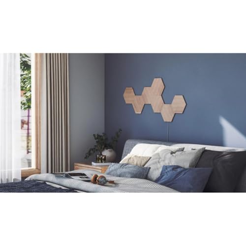 Nanoleaf Elements Expansion Pack, 3 Esagoni LED Aggiuntivi Effetto Legno - Applique da Parete Interno Modulari, Luci Led Dimmerabile WiFi, Funziona con Alexa, Sincronia Musicale, Decorazioni Casa