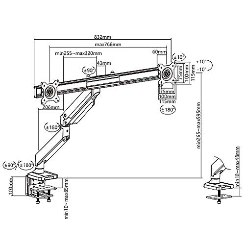 ▶Inclinazione regolabile da + 10 ° a -10 ° ▶Molla a gas