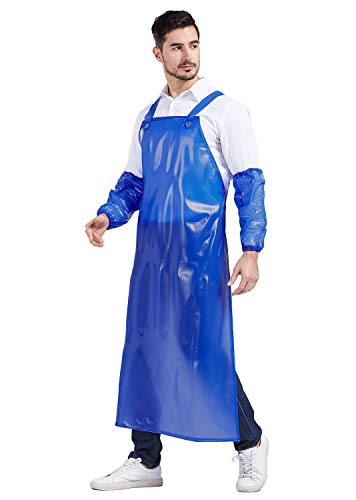 Nanxson Grembiule impermeabile resistente regolabile, grembiule da lavoro in gomma,CF3109 (Blu(con maniche), Taglia unica)