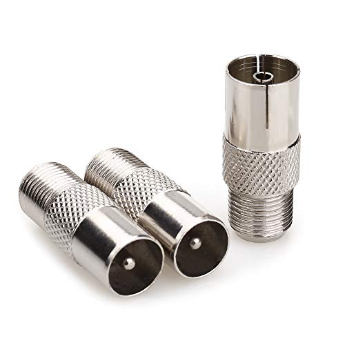 NANYI - Accoppiatore coassiale aereo TV femmina a maschio, Presa connettore a vite tipo T / F per innesto antenna coassiale RF - 3 pezzi