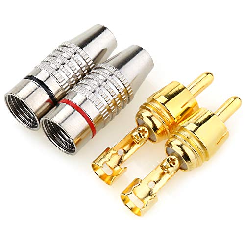 Nanyi - Adattatore per connettore per altoparlante RCA maschio a 2 viti placcato oro per connettori audio e video balum per multimedia e CCTV, 2 pezzi