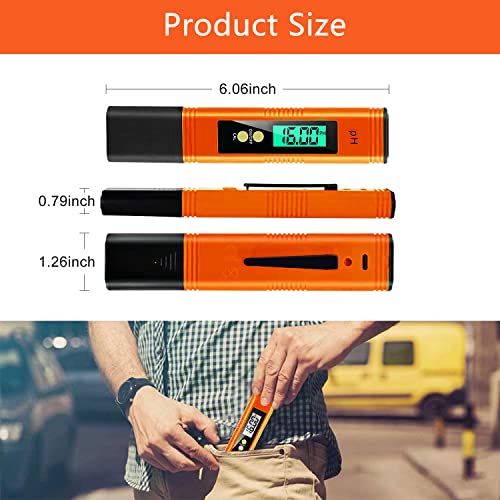【Design Portatile,Accessori Completi】Il tester ph aggiornato è di piccole dimensioni e leggero e può essere facilmente messo in tasca per un facile trasporto. Non importa dove ti trovi, puoi usarlo con tranquillità, senza preoccuparti della qualità dell'acqua. L'intero set di misuratore di ph acquario è dotato di 6 confezioni di polvere tampone PH, 2 batterie a bottone, 1 man