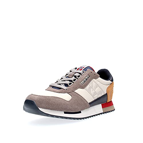 NAPAPIJRI Sneaker Casual Uomo Pelle Tessuto Bianco Beige Taupe e Blu Modello F1VIRTUS01 N.43