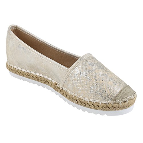 Napoli-fashion Jennika - Espadrilles da Donna con Brillantini, Motivo Floreale, con Strass Metallici, in Tessuto, con Rivetti, per Il Tempo Libero
