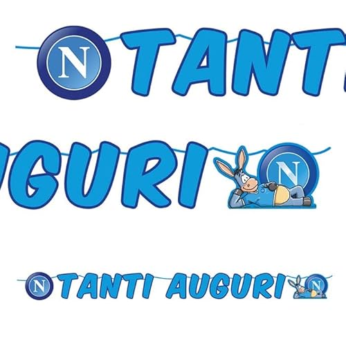 Napoli Festa Compleanno Kit - Festone Kit Scritta Maxi “Tanti Auguri” Napoli 600 x 25 cm - 50 Picks Sagomati 3,5 x 6,5 cm Napoli - Popper 21 cm Forza Napoli