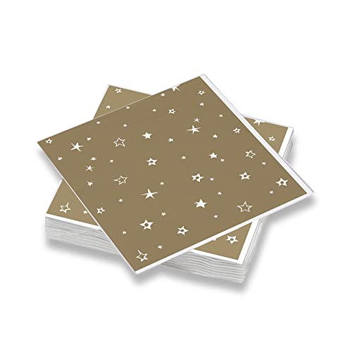 Una confezione di alta qualità: realizzati in ovatta di cellulosa, questi tovaglioli motivo Village or in carta a 3 veli presentano una goffratura periferica che garantisce la coesione delle pieghe. Con un buon spessore e stampati con una bella decorazione, saranno adatti a tutti i tuoi eventi di fine anno, Capodanno e Natale per i quali vorrai offrire una decorazione personalizzata e di festa. Questo tovagliolo è stampato con stelle e scintillii dorati. Dimensioni di un tovagliolino aperto 33 x 33 cm. Dimensioni di un tovagliolino piegato 16,5 x 16,5 cm.