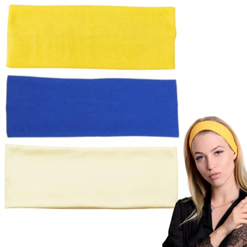 NARAMAKI Fascia Elastica per Capelli - Set di 3 Fasce Elastiche 100% Cotone Donna Uomo (Giallo Azzurro Panna)