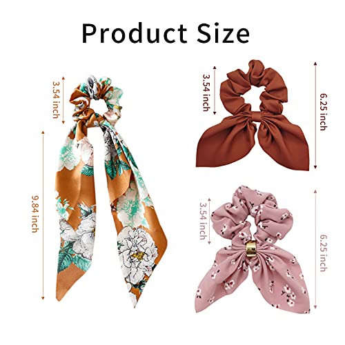 Naruidu, 10 fasce elastiche per capelli in chiffon, con fiocco, stile vintage, floreale, tinta unita, per sciarpe, cravatte in chiffon, accessori per capelli per donne o ragazze