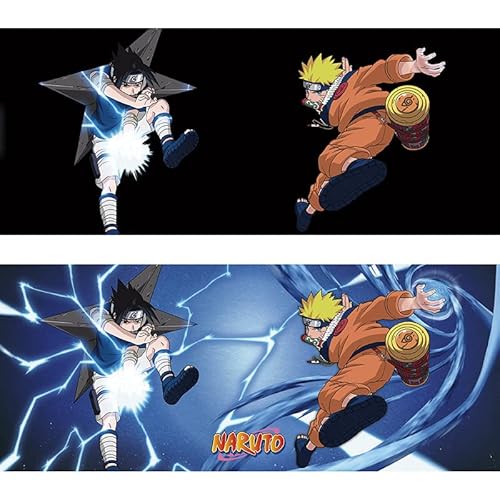 Naruto - Tazza effetto termico Naruto & Sasuke, colore nero, stampata, in 100% ceramica, capacità circa 460 ml.