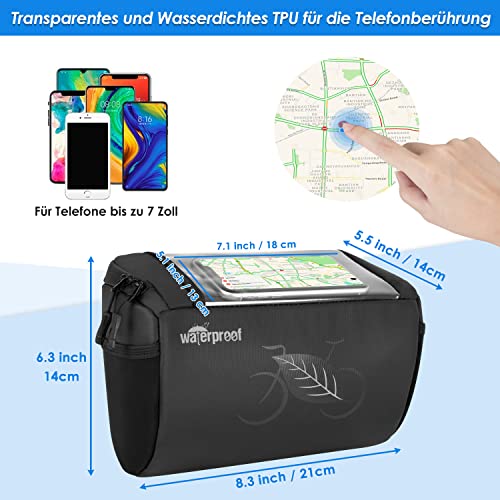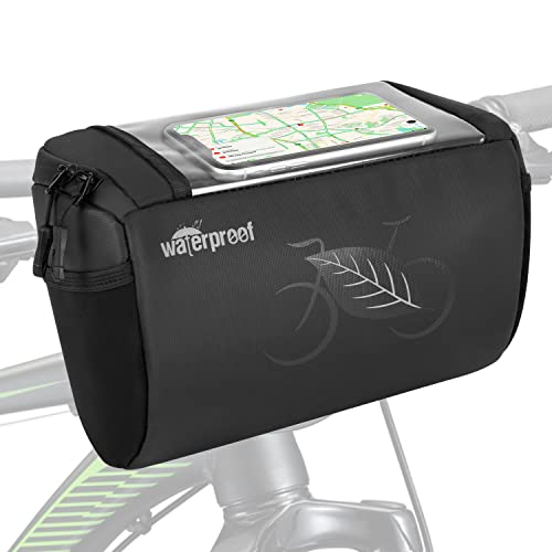 Nasjac Borsa per Manubrio Bici, Cestino portaoggetti Anteriore Impermeabile per Manubrio Bicicletta con Motivi Riflettenti e Supporto per Telefono Touchscreen Trasparente Resistente all'Acqua