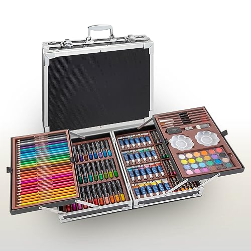 Nassau Fine Art Valigetta da Disegno | Set con 145 Pezzi in Custodia di Metallo | Artistico per Bambini e Adulti | Matite Colorate, Acquerelli, Pastelli