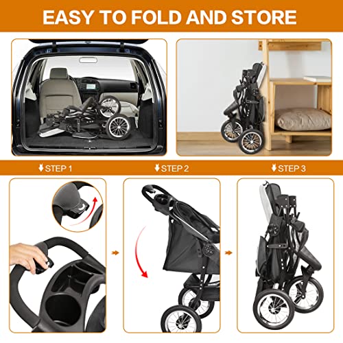 Nastarki Carrello per Cani Travel-Cinghia Cane Gatto Passeggino Jogger 25 Kg Passeggino per Cani di Taglia Pieghevole con Cesto Portaoggetti e Portabicchieri (Nero)