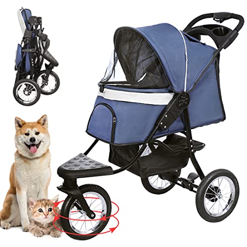 Nastarki Carrello per Cani Travel-Cinghia Cane Gatto Passeggino Jogger 25 Kg Passeggino per Cani di Taglia Pieghevole con Cesto Portaoggetti e Portabicchieri (Blu)