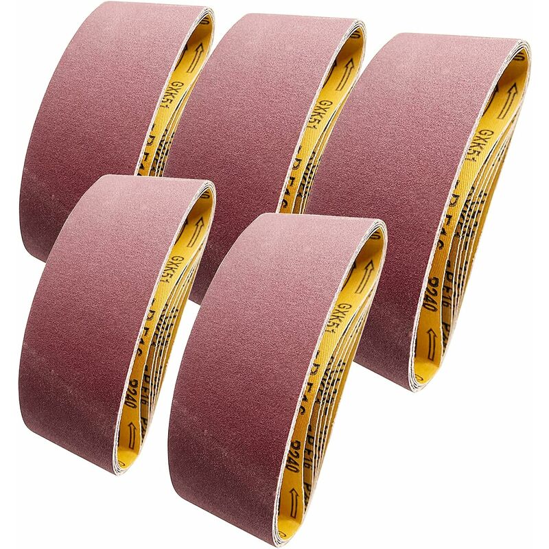 Pacchetto - 15 set (3X grana 80, 3X grana 120, 3X grana 150, 3X grana 240, 3X grana 400) [Dimensione]: 75 mm (altezza) x 533 mm (circonferenza). [Qualità] È realizzato con particelle di corindone marrone a rivestimento aperto di alta qualità, che possono garantire una lucidatura rapida e duratura. Guarnizioni a nastro bidirezionali di precisione. La sovrapposizione diagonale elimina gli urti nella connessione, l'interfaccia della cintura è solida e non si rompe. Il nastro ha una lunga durata. [Uso multifunzionale] Adatto per levigatrici portatili e macchine utensili a nastro. Usa tutte le macchine 75MMX533MM. Adatto per lucidare legno, alluminio, metalli non ferrosi, plastica e fibra di vetro. Fornisce il massimo in termini di prestazioni, valore, durata e versatilità. Il nastro è costruito con precisione, cerniera a due vie, la giunzione circolare diagonale elimina i giunti di giunzione, l'interfaccia del nastro è solida e non si rompe. < /p> Antistatico e lavabile, più un additivo