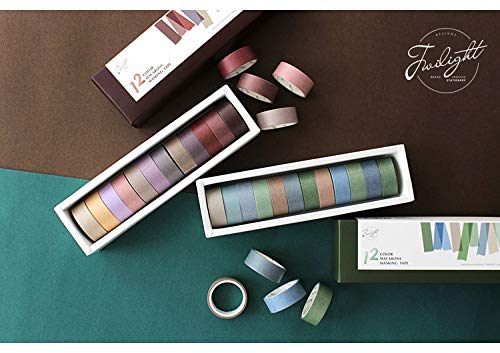 SUQ Set Di 12 Nastri Adesivi Washi Tape, colori naturali, Decorativo per Lavoretti di Fai da Te, diari, Biglietti, Schizzi, Scrapbooking adesivo scuola, Confezioni Regalo, Feste (Morandi, grande)