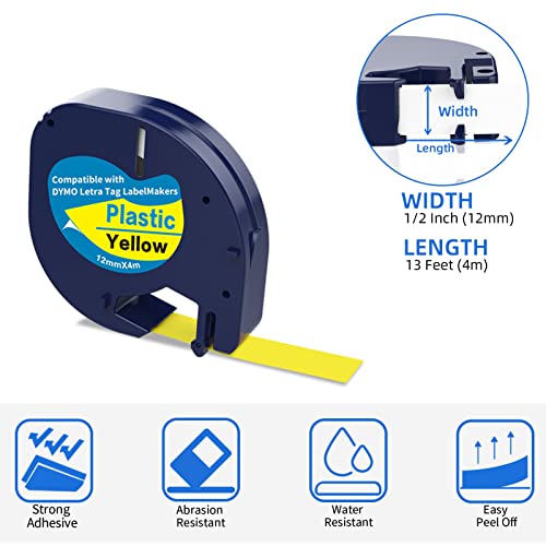 5 x Nastri per Etichette Colorate Compatibile con Nastro Dymo Letratag 91201 91202 91203 91204 91205, 12mm x 4m Ricariche per Etichette in Plastica per Etichettatrice Dymo Letratag LT-100h LT-110T XR