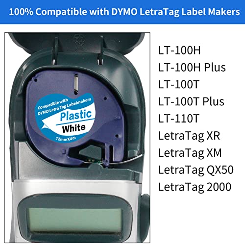2.Il nastro per etichette compatibile con Dymo LT funziona perfettamente con l'etichettatrice dymo: Dymo LetraTag LT-100H, LT-100H Plus, LT-100T, LT-110T, QX50, XR, XM, 2000.