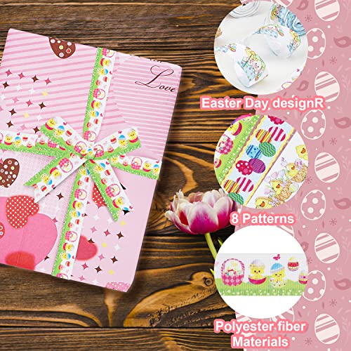 [Materiale di alta qualità]: i nastri pasquali sono realizzati in tessuto morbido, non si consumano, la tessitura stretta e la trama a coste li rendono adatti a vari progetti artigianali, decorazioni e imballaggi.