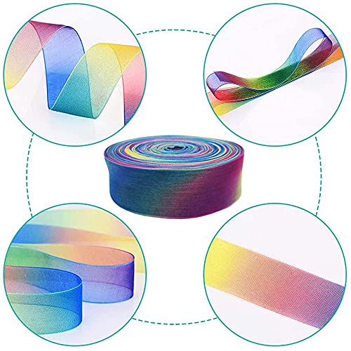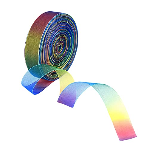 【Nastro Fai da te】 È lungo 50 metri e largo 25 mm, abbastanza lungo e abbastanza largo. Il nastro in chiffon di organza è molto adatto per il tuo artigianato fai-da-te. L'ampio nastro arcobaleno può essere tagliato a una lunghezza adatta all'uso quotidiano e perfettamente abbinato alla confezione regalo.