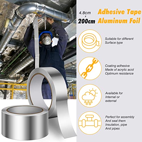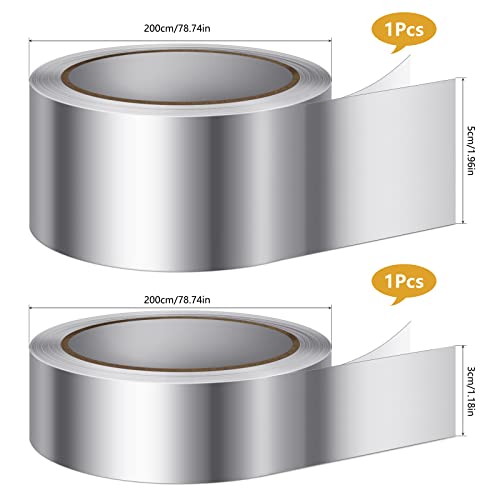 Nastro Adesivo Alluminio, (5cmx20m + 3cmx20m) Nastro Alluminio per Alte Temperature Multiuso, Nastro Autoagglomerante per Riparazioni delle Guarnizioni Isolanti, Pellicola Adesiva - Argento