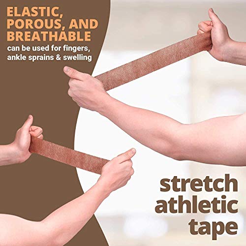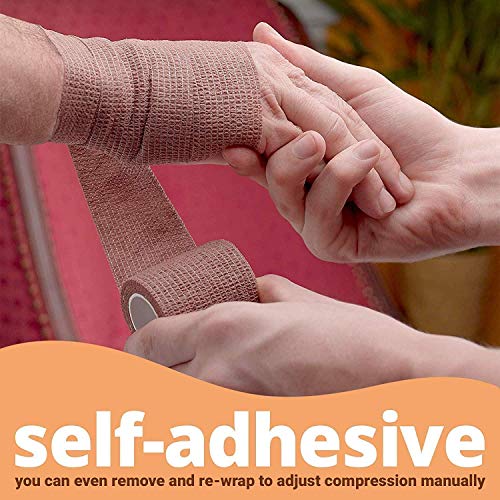 Nastro adesivo autoadesivo - 2" x 5 metri, confezione da 12 (abbronzatura media) Rotoli di benda autoadesiva e impacco sportivo sportivo per caviglia, polso, slogature del ginocchio e gonfiore