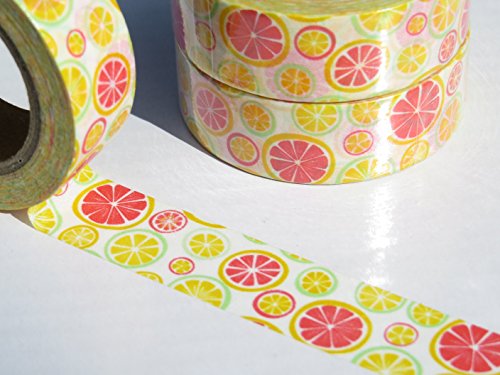 Nastro adesivo decorativo washi, motivo: agrumi colorati, frutta