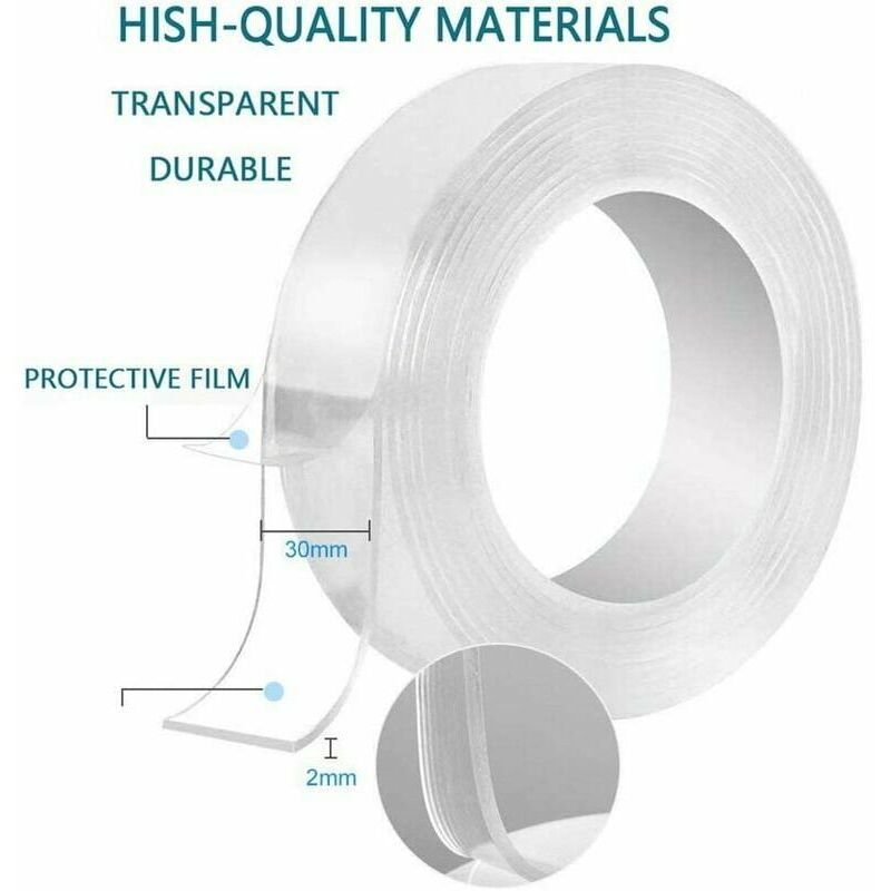 Nastro biadesivo resistente - : grazie alla nuova nanotecnologia e ai materiali adattabili, può essere attaccato a qualsiasi superficie. Può contenere 1 kg su una superficie liscia, quindi puoi attaccare tutto ciò che desideri. [Lavabile e riutilizzabile]: se il nastro biadesivo si sporca, non sono necessarie salviette o detergenti. Basta sciacquare con acqua e riapplicare il nastro forte. [Ampio utilizzo del nastro adesivo senza cuciture]: questo versatile nastro nanoadesivo può essere utilizzato in tutti i ceti sociali, ad es. B. in cucina, in ufficio, al cellulare o in macchina, in soggiorno, con attrezzi e altro ancora. Può essere utilizzato per inserire foto e poster, per fissare tappetini, per incollare oggetti e molto altro. [Taglio fai-da-te]: può essere tagliato a qualsiasi dimensione e lunghezza desiderata, risparmiando spazio. Può essere allungato, piegato e piegato per soddisfare le tue esigenze. Funziona alla grande nell'intervallo di temperatura di -16°C 62°C [Decorazione