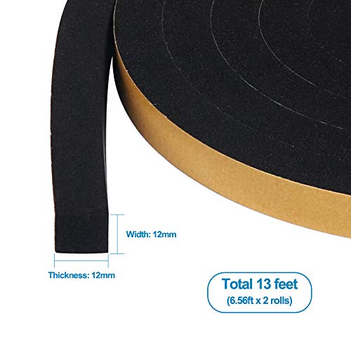 Nastro adesivo in schiuma, 12 mm (larghezza) x 12 mm (T), sigillante per paraspifferi per porte e finestre da cucina (2 pezzi di lunghezza totale 4 m)