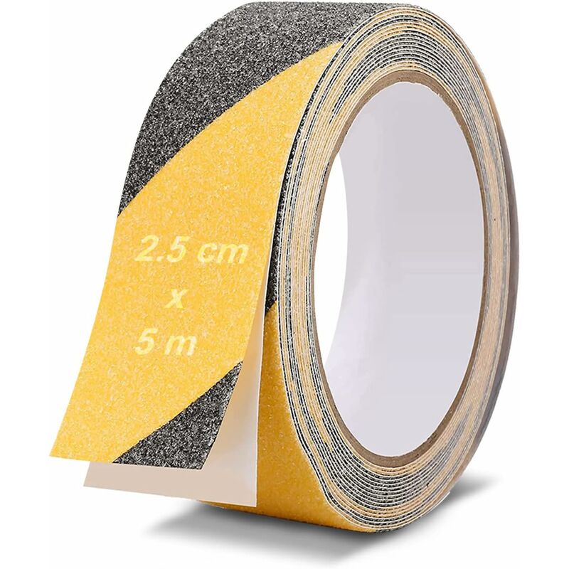 Materiale e dimensioni - : il nastro adesivo antiscivolo è realizzato in PVC di alta qualità e il vistoso colore nero e giallo può migliorare la visibilità e migliorare efficacemente la sicurezza. La dimensione è: 5 m x 2,5 cm. 【Antiscivolo e resistente all'usura】: La superficie smerigliata a grana 80 migliora molto bene la trazione del piede e offre la massima protezione per bambini, familiari, anziani e animali domestici senza sacrificare il comfort. Elevata resistenza all'abrasione e forte forza adesiva, che possono aumentare la trazione dei tuoi piedi e ridurre il rischio di scivolamento. 【Impermeabile e protezione solare】: il nastro antiscivolo può resistere a temperature estreme. In condizioni di caldo o freddo estremo, non si crepa, non si sbuccia o si rompe. Adatto per uso interno ed esterno tutto l'anno. L'adesivo non è facile da mantenere. 【Multiuso】: Il nastro antiscivolo è facile da installare e adatto a varie superfici, come pavimenti, scale, marciapiedi, scale, rampe