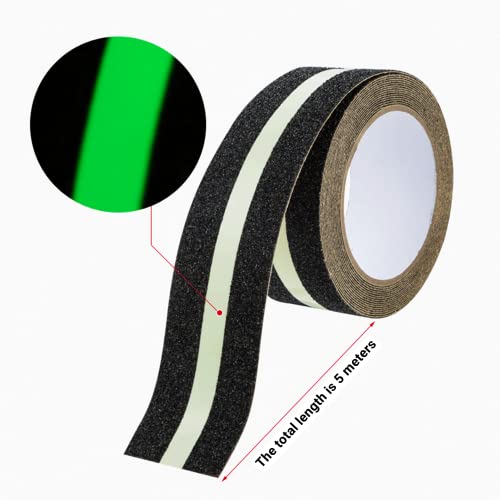 Nastro Antiscivolo Nastro Luminoso Adesivo Nastro Bagliore Nel Buio Cinta Antideslizante con Strisce Luminose Verde per Scale Pareti Gradini, 5m x 50mm