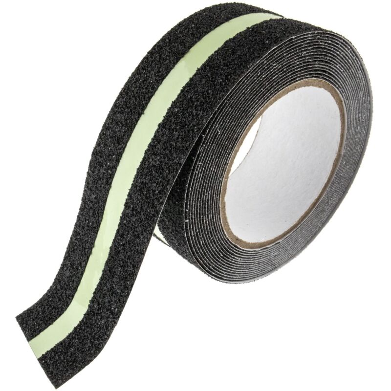 SeKi Nastro antiscivolo nero fosforescente Glow in The Dark, 50 mm x 5 metri, nastro di sicurezza antiscivolo per scale, gradini, piastrelle e pavimento;