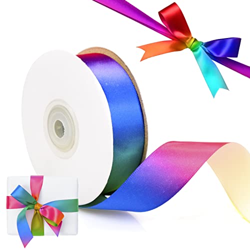 22 m x 2,5 cm Nastro Arcobaleno, Nastro di Raso in Poliestere, Nastri Decorativi Tessuto, Nastro in Raso per Confezione Regalo Regali Decorazione Fai da Te