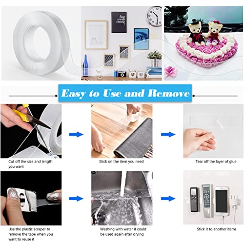 Il nastro nano trasparente si fonde praticamente con qualsiasi luogo della tua casa, lavabile, riutilizzabile, facile da rimuovere, non danneggia le pareti e le superfici e non lascia residui.