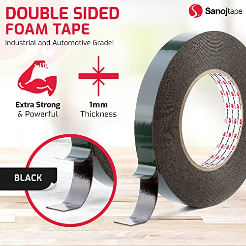 Nastro Biadesivo Nero Ultraresistente Sanojtape 25mm x 10m Nastro per Montaggio Permanente Ideale per Applicazioni Automobilistiche Pezzi Formati, LED, Impermeabilizzazioni Spessore 1 mm