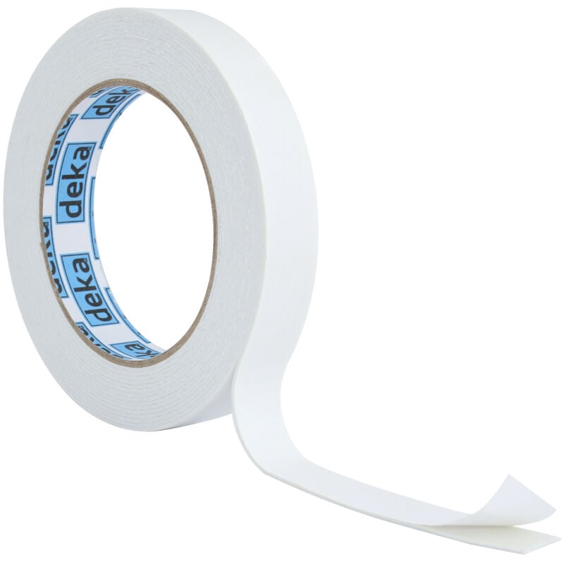 NASTRO BIADESIVO IN SCHIUMA BIANKA - realizzato in schiuma IXPE - adesivo hot melt garantisce una perfetta adesione alle superfici incollate - resistente alle alte temperature - impermeabile e resistente a solventi e plastificanti - per superfici ruvide e irregolari, per diversi tipi di superfici - tipo di colla: hot melt Dimensioni - 19 mm x 5 m Spessore - 1 mm Resistenza allo strappo -> 0,43 nodi/m Elasticità -> 80%
