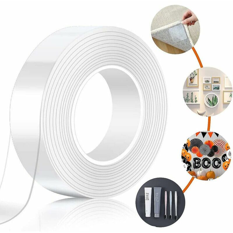 Materiale: questo eccellente nastro biadesivo è realizzato in materiale acrilico di alta qualità, riciclabile ed ecologico. Il resistente nastro biadesivo è trasparente e non danneggia le pareti e le superfici né lascia residui o tracce di colla. Facile da usare: basta tagliare la misura e la lunghezza che desideri Il nastro può essere tirato, piegato e srotolato secondo necessità. Può essere utilizzato anche in case, uffici, automobili, spogliatoi, uffici, bagni, ecc. Funziona perfettamente a temperature comprese tra -16 C ~ 62 C. Molteplici usi: può essere utilizzato per diversi oggetti come cucine, uffici, soggiorni, telefoni cellulari o valigie, strumenti, ecc. Puoi usarlo per riporre oggetti come porta cellulare per auto, poster, portafoto, portapenne, adesivi murali, ganci, gadget, lavagne adesive, custodie per cellulari, gesso di Parigi, oggetti decorativi, decorazioni murali, ecc. Attaccare o riparare. Il nastro può essere utilizzato su pareti, pavimenti, porte, finestre