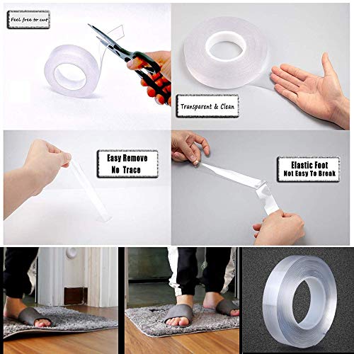 Nastro Biadesivo Trasparente Extra Forte, Lavabile Senza Tracce Nastro Nano Riutilizzabile, Antiscivolo in Gel Nastro Biadesivo per Ufficio Casa Pareti Moquette Foto
