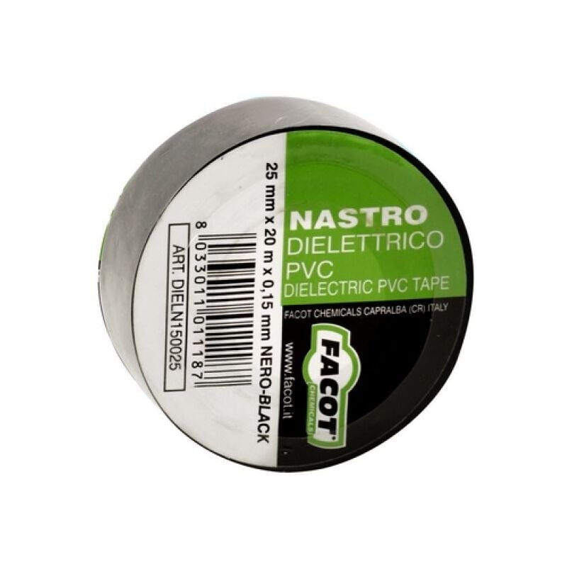 Nastro adesivo con supporto in PVC autoestinguente conforme alle norme CEI 15/15. Nero. Con massa adesiva a base di gomma naturale. Utilizzato per tutte le nastrature di natura elettrica, ricostruzione del giunto dielettrico nella giunzione dei cavi, rivestimenti isolanti di condutture, isolamento ed identificazione delle fasi, riparazioni di elettrauto, cablaggio di fili, avvolgimento protettivo delle spire esterne di bobine, nastrature di protezione meccanica ed anticorrosione, sigillattura di coppelle isolanti. Mantiene l'elasticità alle basse temperature. Colori disponibili: nero e grigio ISO. Modo d'uso: Applicare con leggera tensione del nastro fino a perfetta aderenza alle superfici. (DianFlex) H 38 mm x 25 mm x 0,13 mm