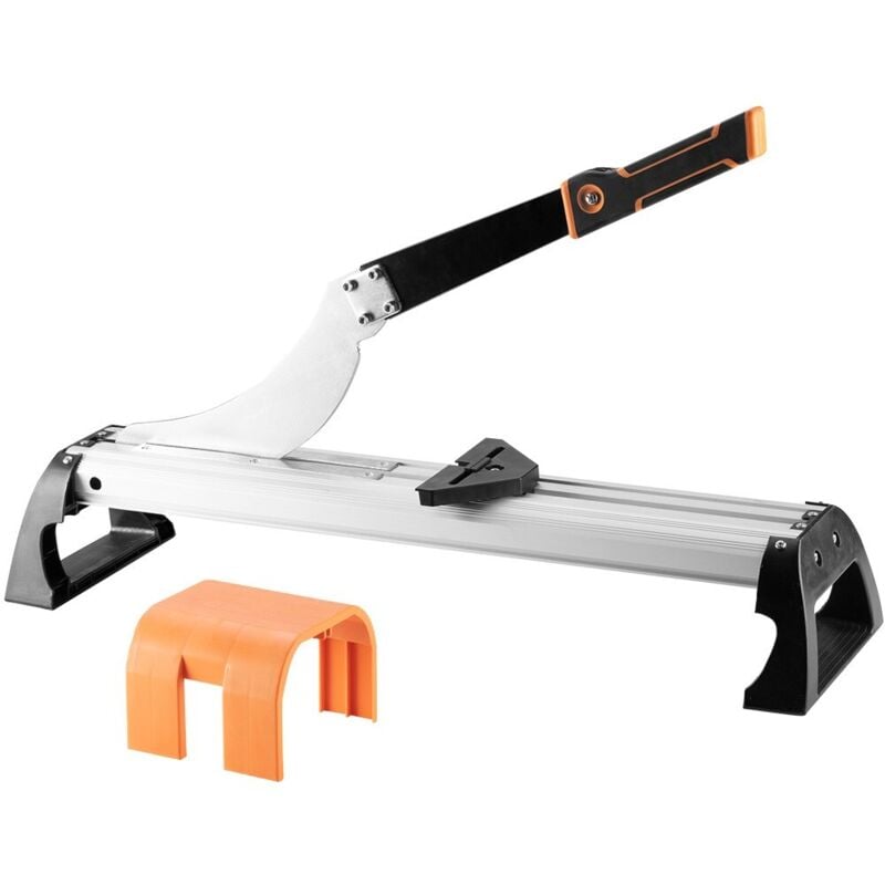Dati tecnici: Dimensioni lorde (larghezza x altezza x lunghezza)21,20 x 14,00 x 69,50 cmPeso3,6 kgMarcaNEO TOOLSPKWiU25.73.30.0Spessore massimo della piastra12 mmManicoDoppi materialiMateriale lamaAcciaio al carbonio, tempratoLarghezza di taglio210mmGhigliottina per piastre NEO (Rif. No. .56-010) è per taglio di pannelli laminati con larghezza massima di 210 mm e spessore di 12 mm. Il corpo è in alluminio, la superficie è zincata, le gambe sono in plastica e la lama è in acciaio al carbonio temprato. Il set include un supporto in plastica su cui può essere appoggiato il pannello tagliato.**
