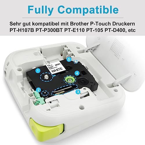 Adatto ai seguenti modelli di stampante Brother P-Touch GI100, Pt200, Pt1000, PT1000BM, Pt1010, PT1010B, PT1010NB, PT1010R, PT1010S, PT1090, PT1090BK, PT1100, PT1100SB, PT1100SBVP, PT1100ST, PT1120, PT1130, PT1160, PT1170, PT1170S, PT1180, PT1190, PT11Q, PT1200, PT1230PC, PT1280, PT1280SR, PT1280VP, PT128AF, PT1290, ST1150, ST1150DX, PT7100, PT-D200, PT-H100, PT-E106, PT-E200