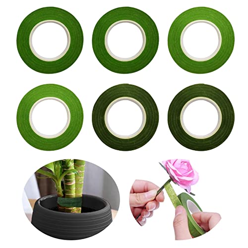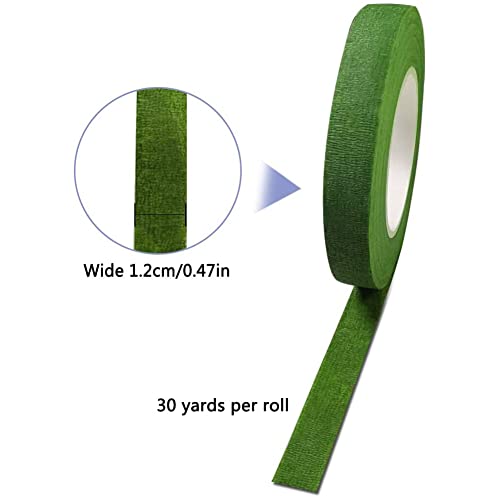 Dimensioni: 6 rotoli di nastro floreale in diversi colori verde, verde scuro (2 rotoli), verde medio (2 rotoli), verde chiaro (2 rotoli). Ogni rotolo è largo 12 mm e lungo 90 piedi per soddisfare le vostre esigenze artigianali.