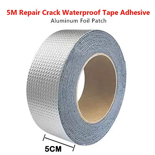 Nastro in gomma butilica in alluminio super impermeabile per la riparazione di tetti e perdite, striscia sigillante per riparare crepe sul tetto, nastro adesivo per vasca da bagno e doccia (5 cm x 5 m)