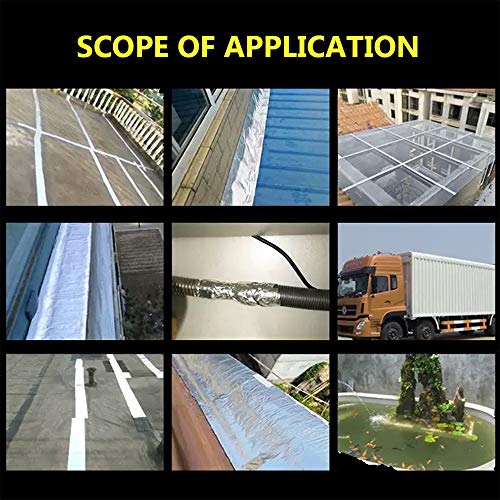 Nastro lampeggiante professionale: questo nastro con elevata resistenza adesiva è adatto per applicazioni esterne, può essere utilizzato per riparare perdite domestiche, crepe piatte in garage in molti tetti, come gomma o neoprene. Perdite nei davanzali delle finestre, infiltrazioni d"acqua, Esterno camper, sotto casa, stagno da giardino,divisione del tubo dell"acqua. È anche un buon materiale per camper per aiutarti a sigillare la fessura del camper.