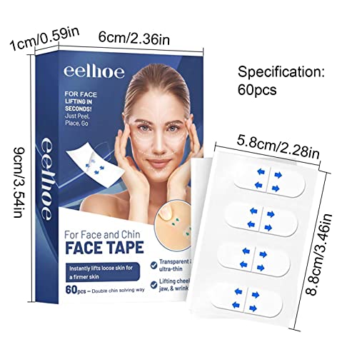 Nastro invisibile per il sollevamento del viso - Adesivi per trucco segreto,60 pezzi di rughe, collo doppio mento, guanciali, toppe adesive per trucco segreto Woyufen