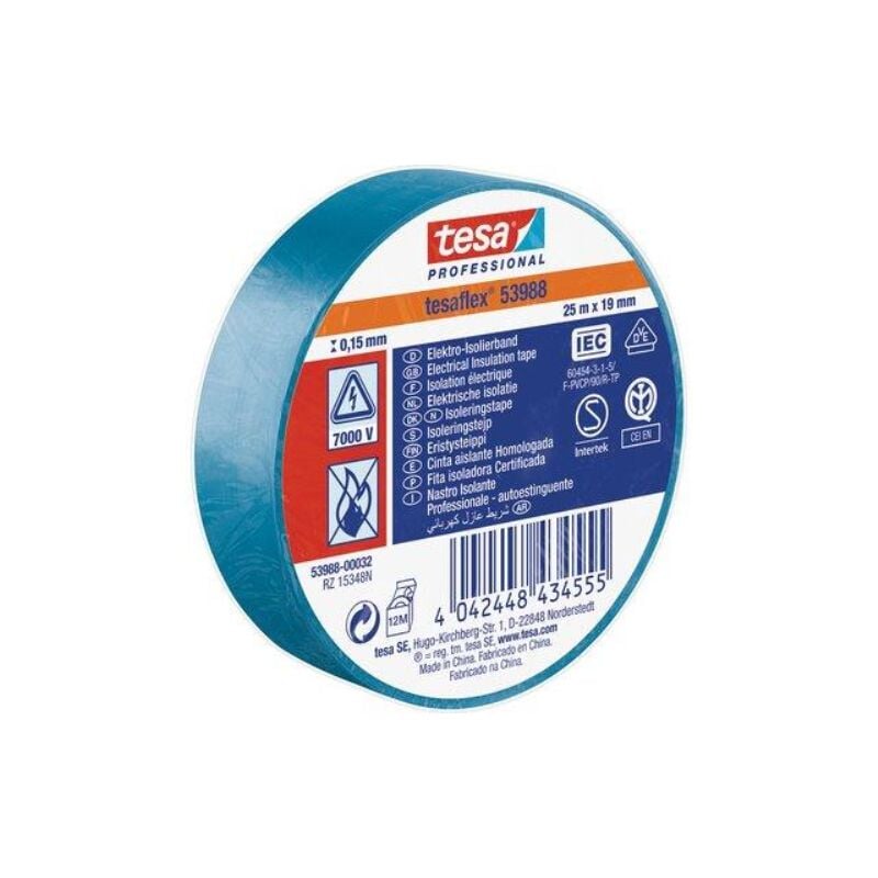 Nastro pvc isolante imq tesa (10 pezzi) Azzurro mm 19 ml 25 in pvc morbido, certificato secondo la norma iec 60454-3-1 / 5. da mm. 0,13 di spessore. elevata tensione di rottura dielettrica (volt 7.000). resistente al calore fino a +90° c.