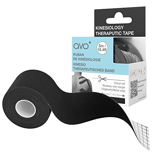 AVO+ Nastro kinesiologico - Rotolo da 5 m di nastro elastico terapeutico per esercizi fisici e recupero muscolare, sollievo dal dolore, gonfiore e lesioni, resistente all'acqua, Nero