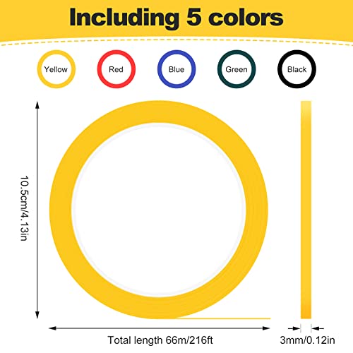 Nastro per lavagna bianca, Nastro grafico per grafici, Autoadesivo, 5 colori assortiti, 3 mm x 66 m per rotolo, Confezione da 5 rotoli