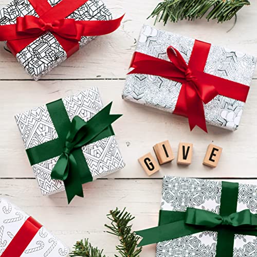 Materiali di alta qualità - I nostri nastri di raso sono realizzati in tessuto di poliestere, bordi fini e fermi, con una trama liscia e morbida, perfetti per la confezione regalo. Durevole, non facile da perdere e indossare e taglio flessibile di nastri natalizi per l'artigianato in qualsiasi dimensione per adattarsi alla tua decorazione.